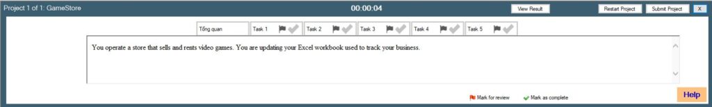 - Mark For Review / Mark as Complete: Đánh dấu trạng thái của các câu đã thực hiện hoặc chưa để có thể quay lại làm lại.(không ảnh hưởng tới kết quả chấm điểm)